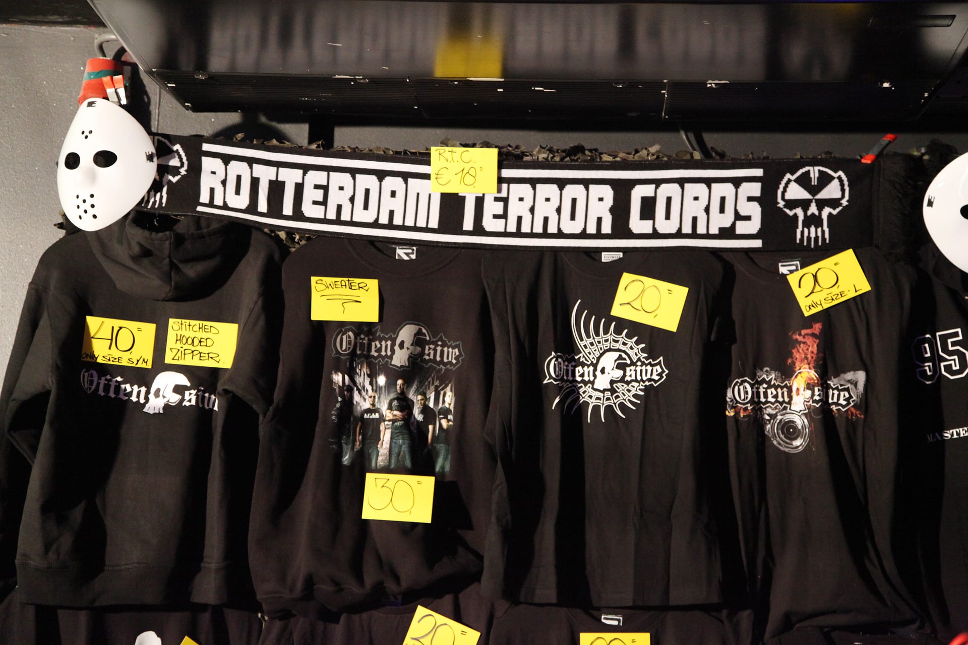 Back in ’95 gabbers were all over Rotterdam with their Kangol training jackets or bomber jackets, shaved heads and Nikes. It was like a uniform for them. These days, gabbers just follow fashion. I mean, we stopped selling Rotterdam Terror Corps bombers in 2006. In general, the whole hooligan connection is pretty much a thing of the past. Of course, what we do is completely apolitical and the hardcore and gabber scenes were always mixed in terms of race—Rotterdam Terror Corps especially. One of our DJs is Surinamese.