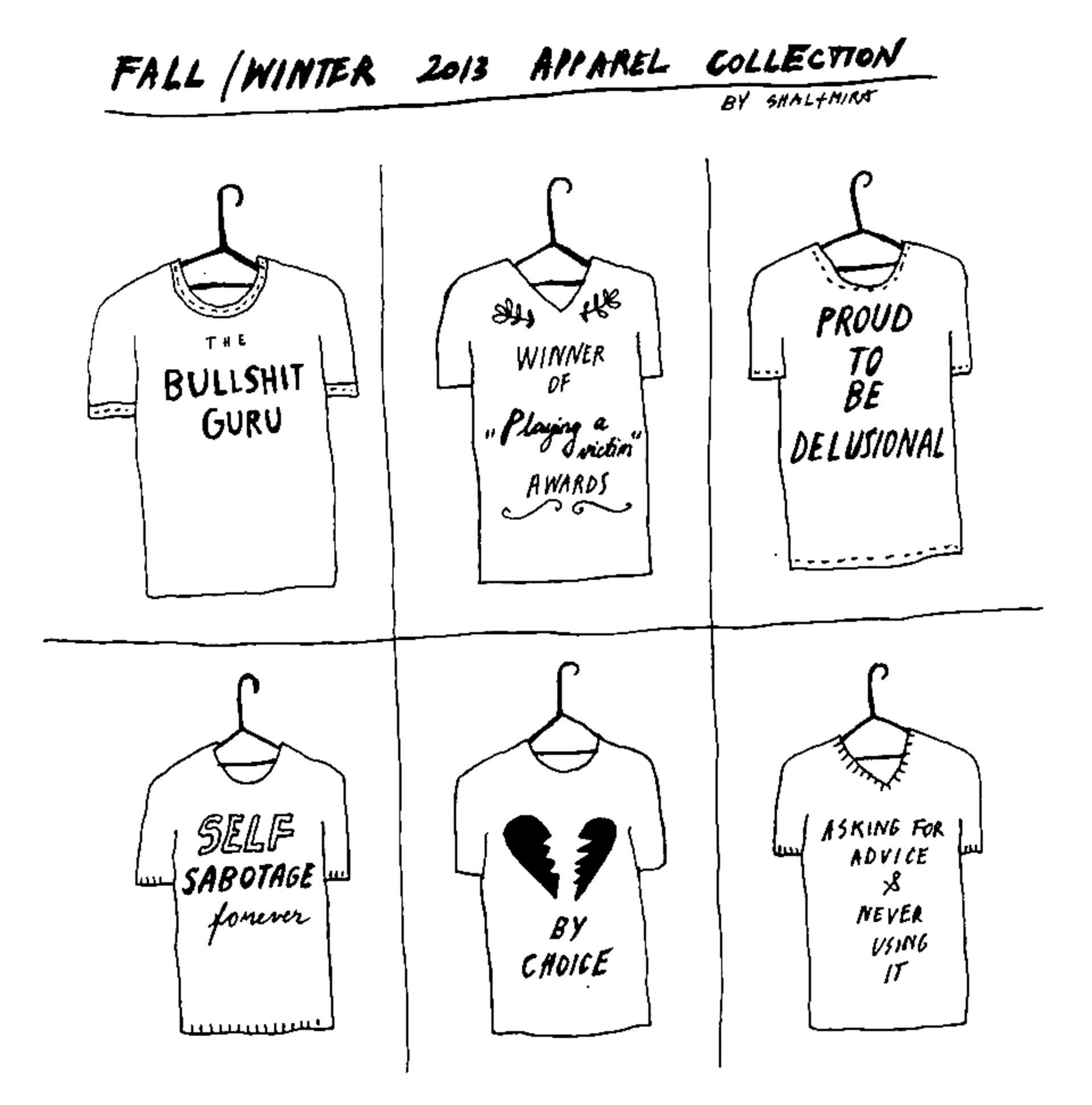 That’s why I need you to buy my T-shirts. Buy one T-shirt or all of them. Take these shirts off my hands, and put them on your body! I need the cash pretty fast, as I’m currently investing in a remake of Nymphomaniac. It’s basically the same movie, shot-for-shot, only instead of sex it’s about a pizza party, and instead of Nazis I’m going to go to Cannes and talk about how there’s never enough cheese or sauce on European pizzas. ~
