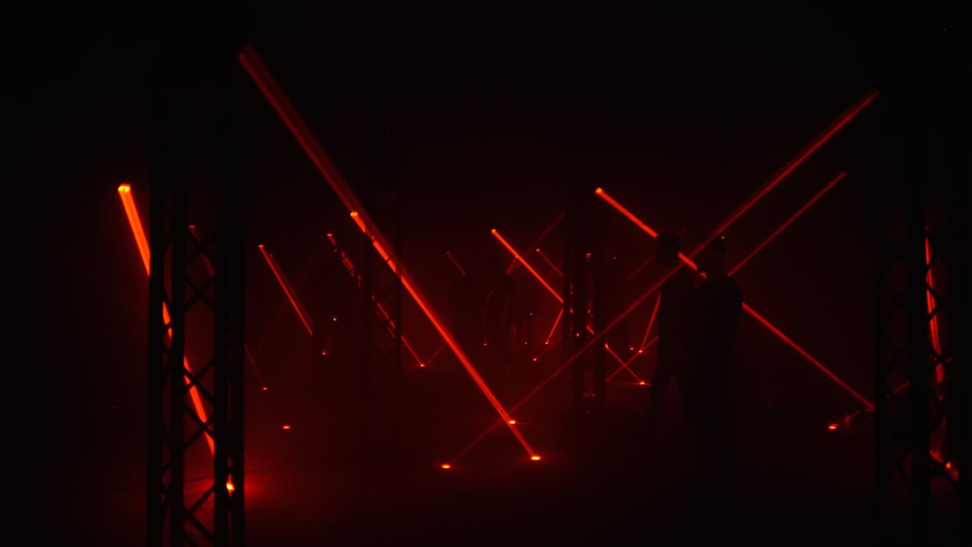 The former East German radio headquarters and recording studios of the Funkhaus are a brilliant location for this idea. Its 1950s Bauhaus architecture is full of Soviet era, tastefully understated design features and elegantly appointed, wood-paneled and floored (superior for sound) rooms: two for concerts and the smallest one containing Tundra’s Hyperjump installation. The Saint Petersburg “artistic community” installed 30 pillars mounted with synced moving lights—concentrated beams of red that would occasionally switch to white—while speakers in each corner of the room discharged layers of drone and ambient drift. The effect is to make an environment that, thanks to volume and darkness, is immersive enough, but feels neither technologically nor artistically cutting-edge. Artists such as Marcus Schmickler use similar tools and more advanced musical ideas with more effective results. (Read more about that here.)