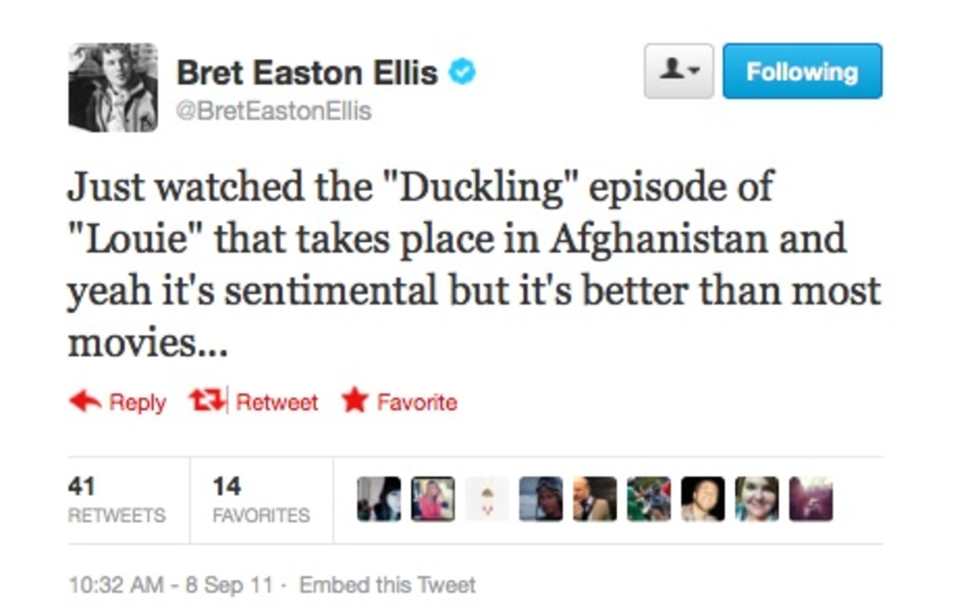 — Bret Easton Ellis (@BretEastonEllis) September 8, 2011
