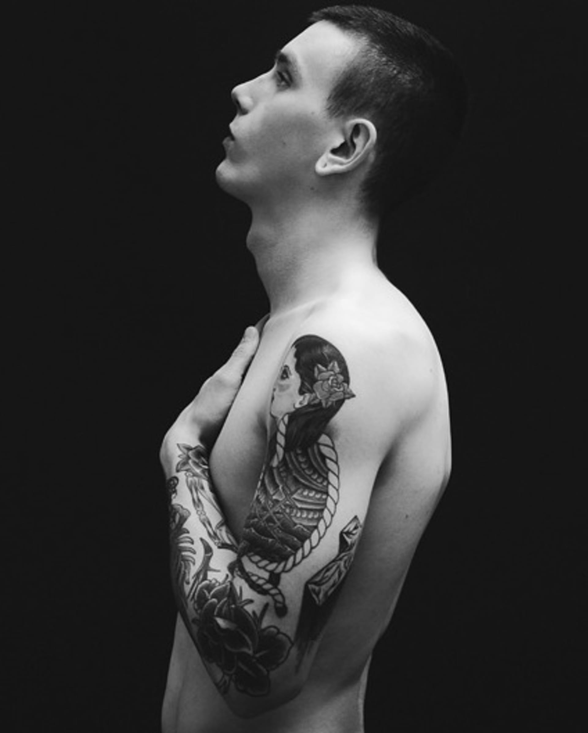 David Metcalfe is not someone you’d immediately think of as a model. Despite boyish good looks topping a tall, muscularly lean frame, Metcalfe is heavily tattooed (both professional and stick ‘n’ poke) and intellectually brooding; you’d sooner picture him fronting a powernoise group than walking down a runway. Yet this high-fashion hooligan, still at the beginning of his career, has modeled for Lanvin, met with Dior, and been the subject of countless photoshoots. Tattoos are hardly wild news in high fashion, but it is Metcalfe’s ability to project emotional extremes frighteningly well that make him so sought after. Yet in person he’s quietly charming, a hard-partying lad who’s found himself in a strange and fascinating situation. As a person who makes a living embedded within the music scene, I find it intriguing how little the two worlds collide on a social level, despite often being packaged together. So I sat down with him to get a taste of life behind the runway.