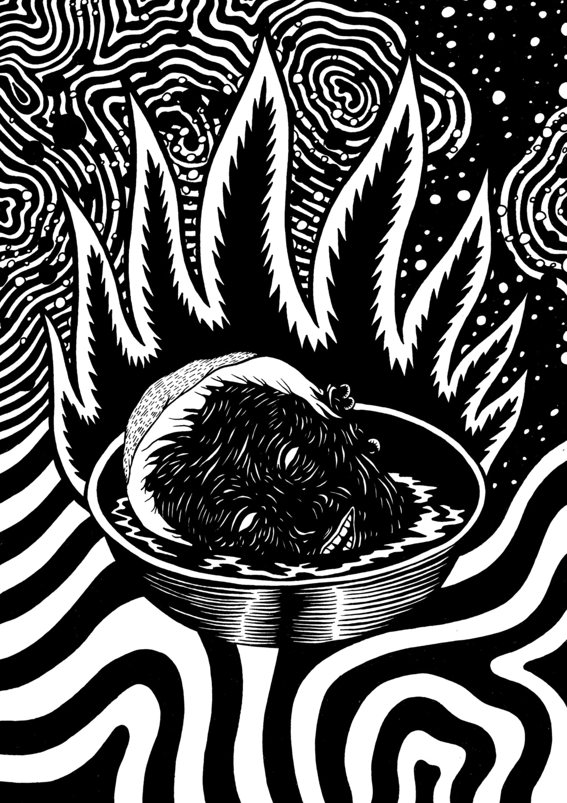 Each night the moon will find me standing over my calzone baby’s crib. My heart fluttering in my chest. The sky’s light eclipsed by the clouds. A movement in the dark. The soft sigh of a minute, a breeze of movement across my cheek like a kiss on a tear. When the clouds pass before the moon again, they wipe away a stain of sauce from my lips. My calzone baby and me.
