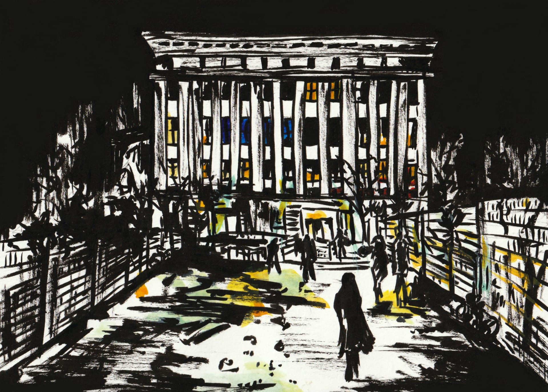 One of the most talked about events of this year’s CTM Festival has been its “Eishalle” installation at Berghain. The idea is simple: It’s an ice skating rink inside the club’s massive Halle am Berghain room that’s open throughout the week. Each night, the installation plays host to DJs of various musical affiliations. Despite the initial hype, reactions to the event have been mixed so far, with most people disappointed by the poor skating experience provided by the rink’s synthetic ice. We sent journalist and illustrator Whitney Wei to find out if the critics are right.