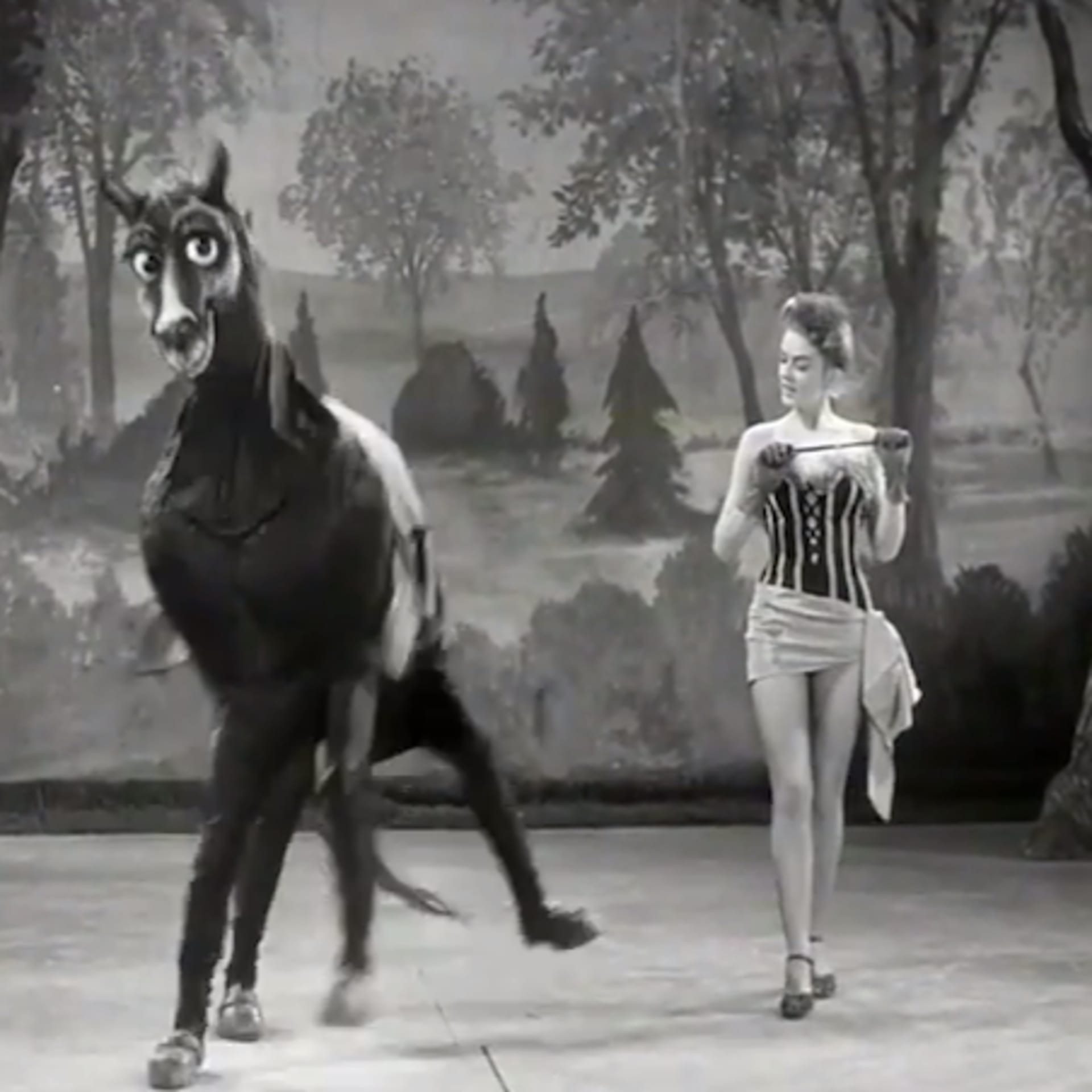 Do you often catch yourself staring out the window, thinking about vague historical equivalencies? What was the Victorian rave? How about the channel for ecstatic musical improvisation in medieval Germany? We catch ourselves doing it all the time, and not just because we have too much time on our hands. Brendon Moeller knows what we’re talking about. In the new video for “Passage to Obscurity” off of his upcoming EP AS002 (Atrophic Society), the 44-year-old adopted New Yorker and South African expat syncs up his his deep, dark banger of a track with a live recording of a 50’s vibraphone orchestra, as well as a scantily clad female entertainer dancing with two people in a horse costume. Maybe this what your grandmother watched after popping mother’s little helpers?