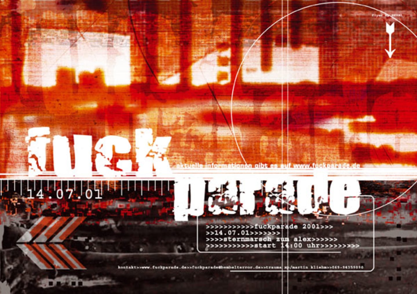 In an attempt to shake-off the association with violence, which was mostly drawn from Berlin’s yellow press, the Hateparade organizers decided to change their controversial name in its second year. The Fuckparade was born. While at heart still an event for extreme music fans and gabber heads, the Fuckparade also attracted techno fans who had become dissatisfied with the commercialized mass event that the Love Parade had become.