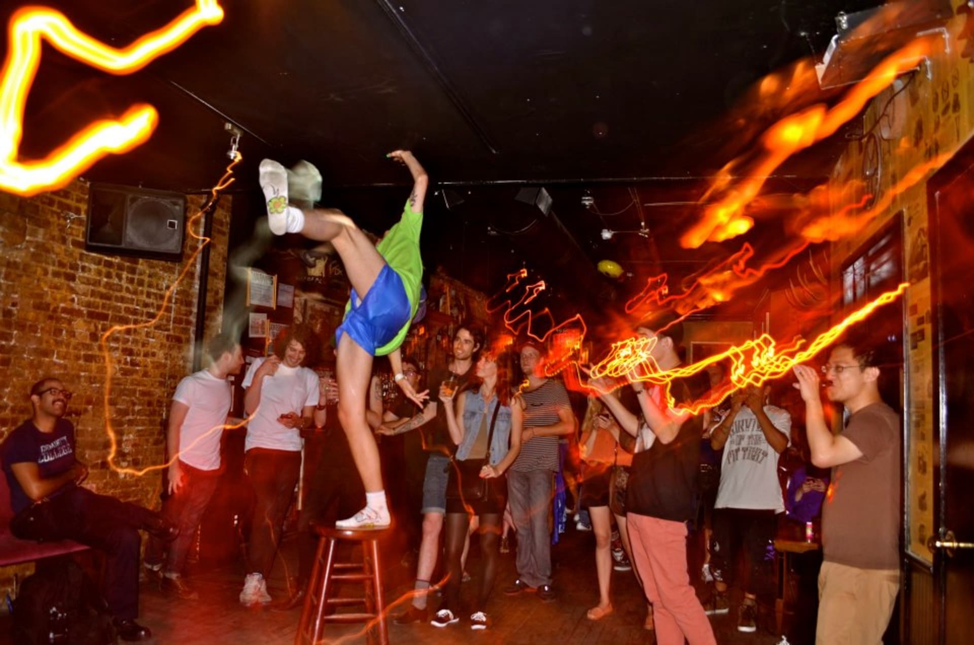 NU DEPTH is a young and hungry up and coming performance artist by the name of Dylan Mulshine from Charlottesville, Virginia, whose “message is simple, continuous positivity.” I have gotten the chance to see NU DEPTH, (who also goes by the name LIL Baby Positive) perform twice, once in the living room of a house which involved him tackling people, yelling at and calling out his “haters” through a delay pedal, and wearing a lampshade on his head. The other was in the back room of a Mexican restaurant in Brooklyn, where he stripped down to his underwear, danced on the bar, and rolled around on the ground covered in beer while screaming about being “extreme”. It’s safe to say he really takes it to a realm of full absurd Dadaist confusion in his performances. It is also safe to say I am a big fan!