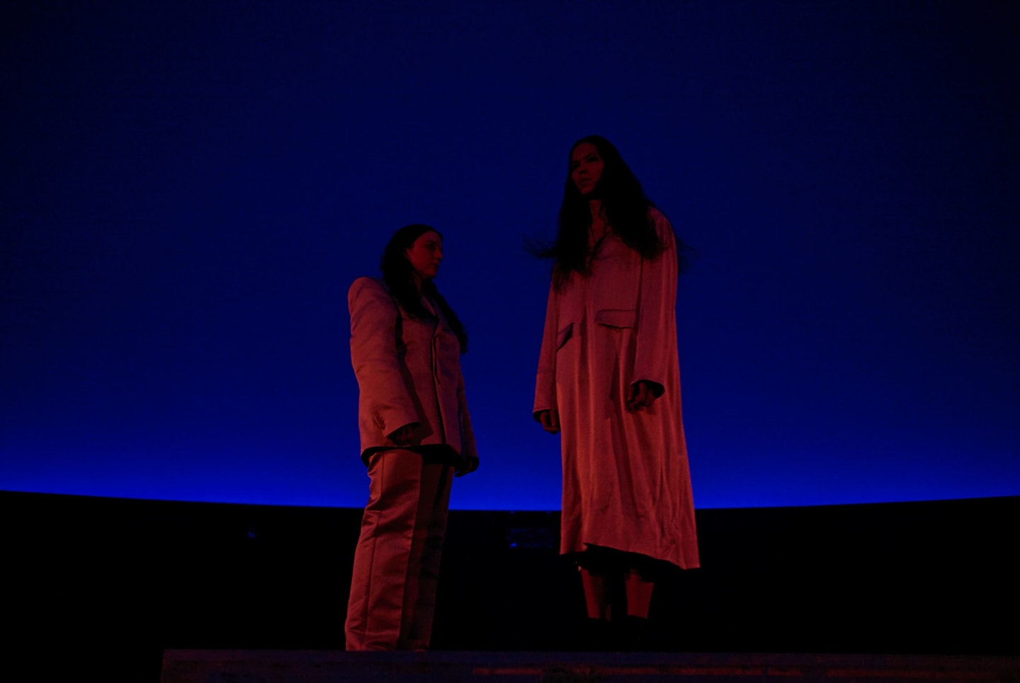 After, Pan Daijing delivered a strikingly uncharacteristic performance. For an artist whose visceral live shows have tended to center herself, accompanied by jarring visual imagery or bathed in red light, Daijing’s video was comparably lighter in tone. Daijing was absent throughout the performance, hidden in the background somewhere out of the camera’s view, which was focused on two singers, whose droning and cooing vocals floated in an out of harmony and dissonance with each other, for an experience that momentarily oscillated calm and unnerving energy.