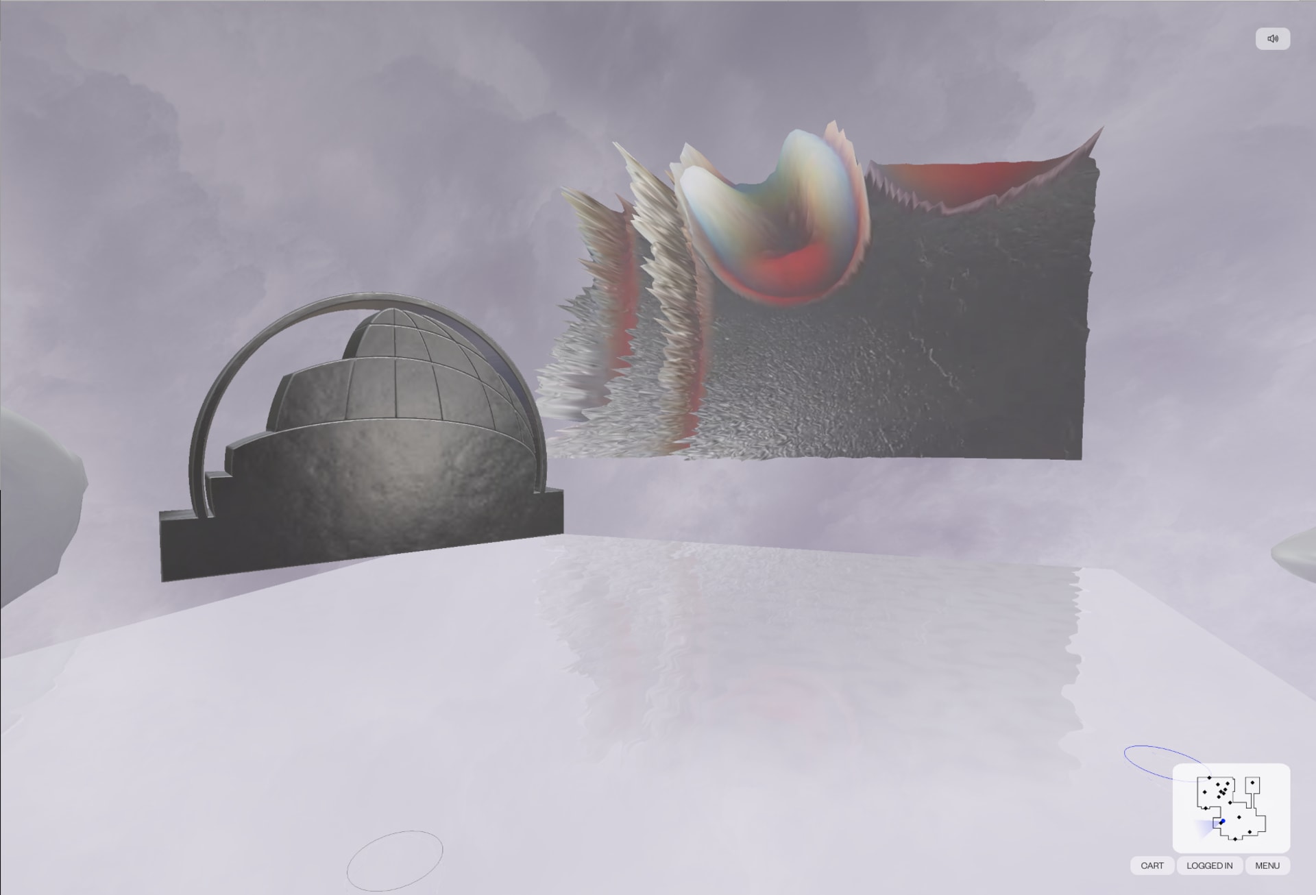 Enter Reference Realities, an immersive, browser-based virtual space where visitors spent time between performers’ sets milling around a gallery-esque, vaporwave-indebted landscape. In my time in Reference Realities, I perused a number of purchasable goods floating in mid-air and spent time in the section dedicated to German magazine 032c, but the real action took place in an unassuming corner called The Planetarium, a space that elevated Reference to much more than the average quarantine live stream. Upon entering, The Planetarium’s platform felt like a more artful Twitch stream, where the main video frame rested atop an undulating ocean of some virtual black gooey substance and a string of giddy (and overwhelmingly supportive) comments flowed along the right side. On the first night of the festival, this was the fitting home of a collaborative showcase presented by Carhartt WIP—who we featured here—and German experimental label PAN.