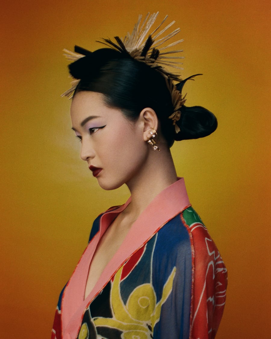 I definitely think I fold different elements of Asian culture into my styling. I think I try really hard to do it in a very subtle way. I’m always very concerned about it looking too costume-y, which I think is something that is really easy to do with a lot of those design elements. So the more I can sneak it in there so it’s almost subconscious, the more I tend to like it. It could be the way that a mock turtleneck cut very slightly resembles the cut of a qipao neck. Or it could be just evoking the general silhouette of a hanbok, that thing. And then also, I would say there are other ways through prints and colors. I do tend to gravitate more toward different types of florals, which I think can read very Asian in different ways, but in a way that’s not so obvious as well.