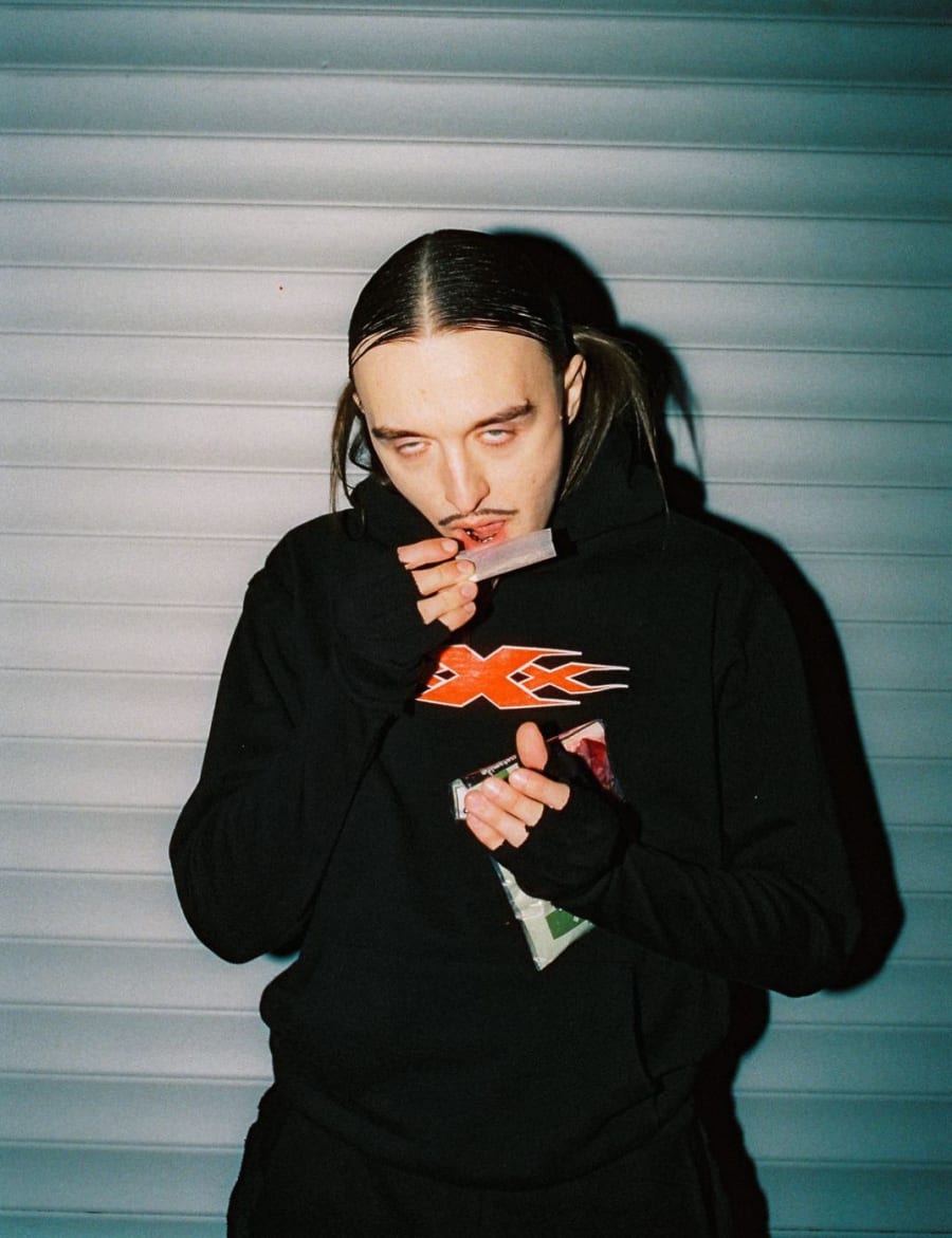 In attempting to identify the Estonian rapper, conceptual artist and anti-fashion icon Tommy Cash’s role in the pop cultural landscape, a historical figure comes to mind: the court jester. While the stereotype conjures images of a juggler in a ridiculous outfit, jesters in the Middle Ages held places of significance in royal courts and high society. They were entertainers who sang, danced, told stories and pulled pranks, but they also were observers with quick wit, who were bestowed with a unique privilege to mock and critique both people and systems of high rank and importance. Cash has carved out a similarly rare place for himself among the most elite and exclusive circles of pop music and luxury fashion, by being accepted and appreciated by the very people and system that his art is challenging.