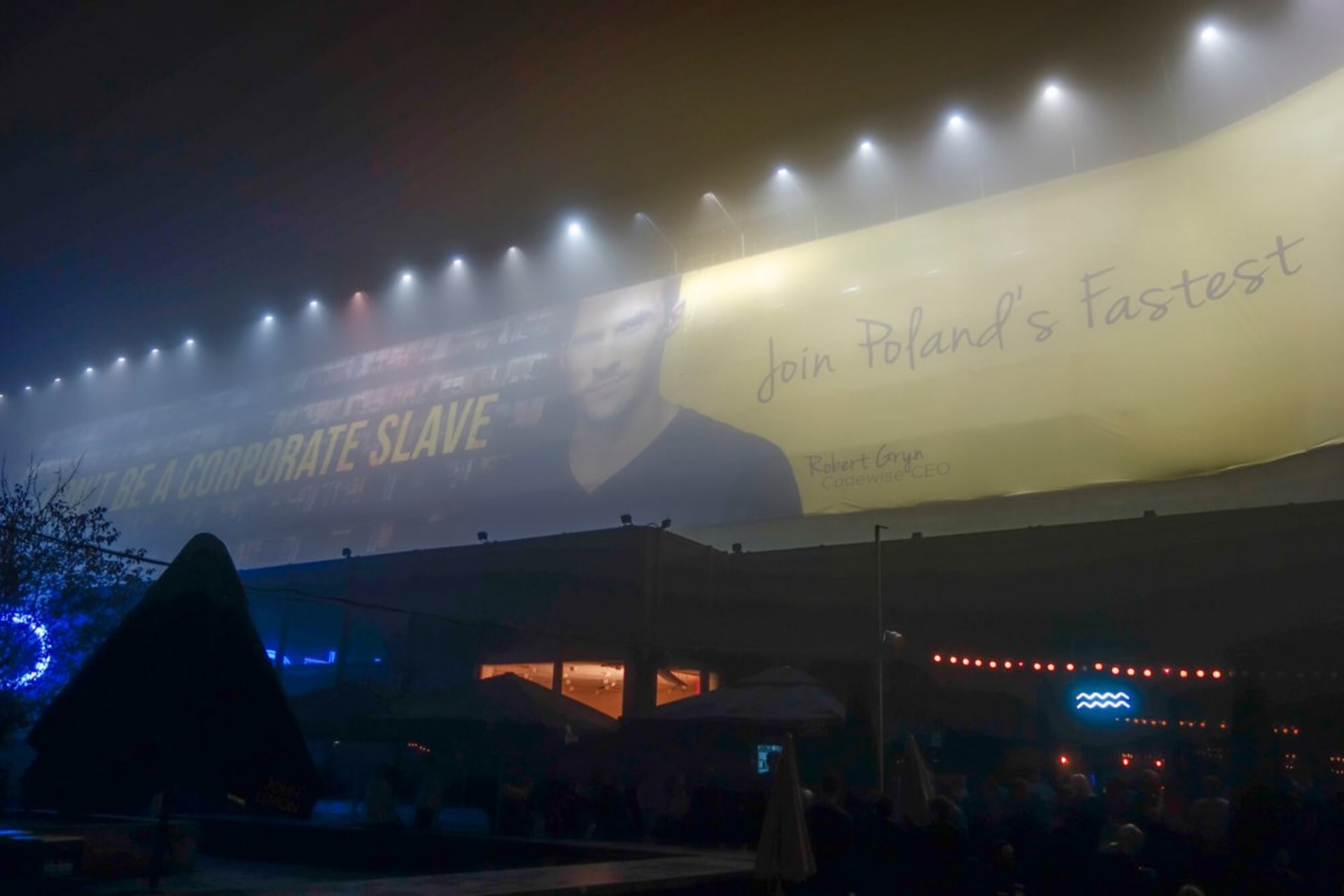 But in my experience the daytime events aren’t as fun as the week’s main attraction: two all-night parties and one half-night on Thursday at Krakow’s Forum, a massive defunct hotel that opened in 1989 and closed in 2002. (This year, an entire side of the hulking brutalist building was covered by an advertisement for “Poland’s fastest growing and sexiest start-up” that read “DON’T BE A CORPORATE SLAVE,” which added an ironically comical touch to the experience of attending an underground rave there.) So it follows that many festivalgoers arrive Thursday or Friday. Unfortunately this means that many attendees miss out on one of Unsound’s most talked about highlights: the late-night industry-insider karaoke sessions that tend to happen earlier in the week.