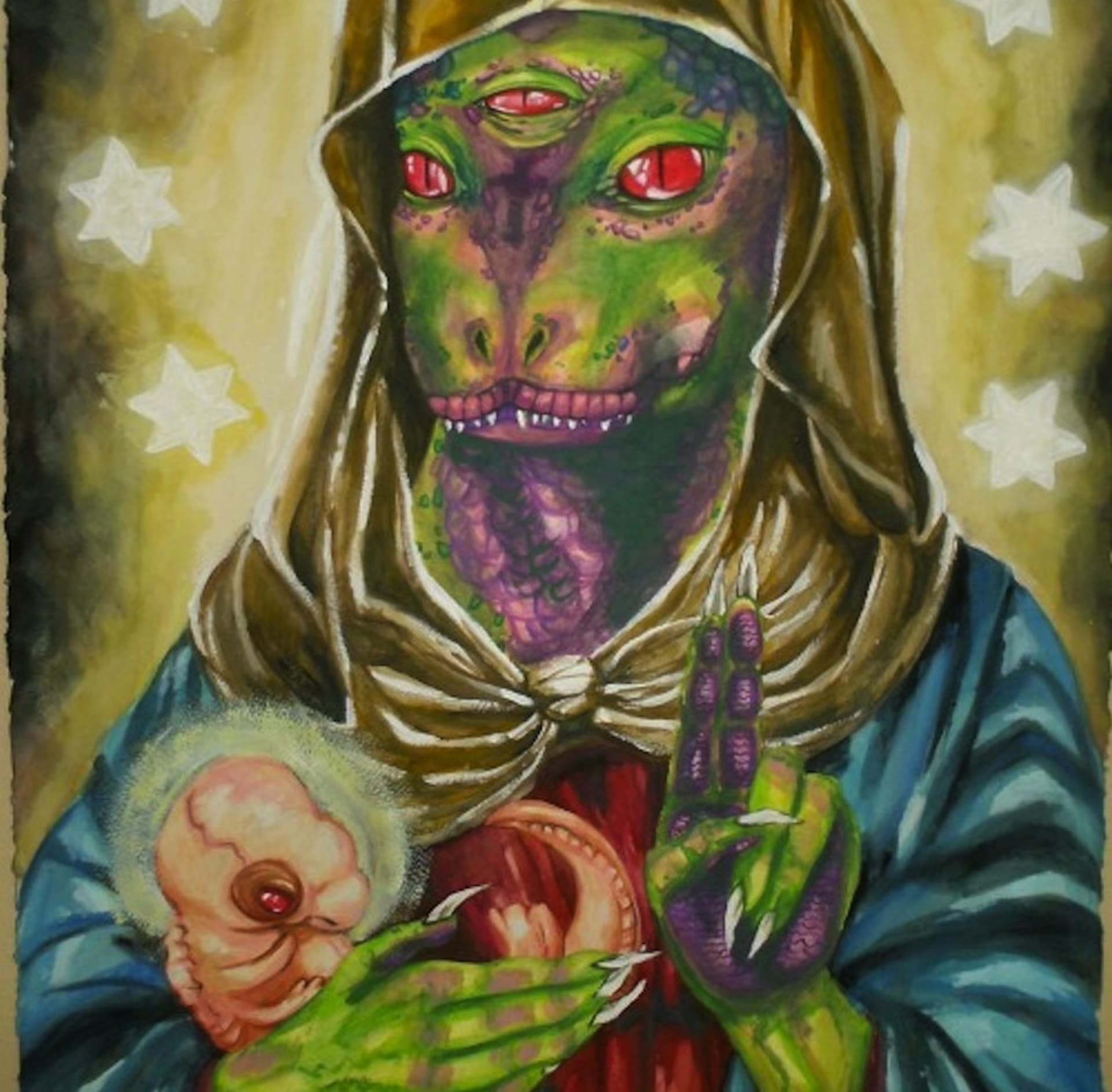 Is the planet run by WorldStarHipHop Illuminati? Do we all dissolve into the lamestream when we die and turn into cargo pants? Are dragons real, and if so, is Game of Thrones (the book, not the TV show) real? The answer is MAYBE, and you can express your noncommittal to reality with this Reptilian Benediction painting. Your friends might say “Ick,” but Icke will say “Right on!” We have no idea where it comes from, and no idea where to get it, but it’s now the wallpaper on our flip-phones. Hit us on that Nokia World Order!